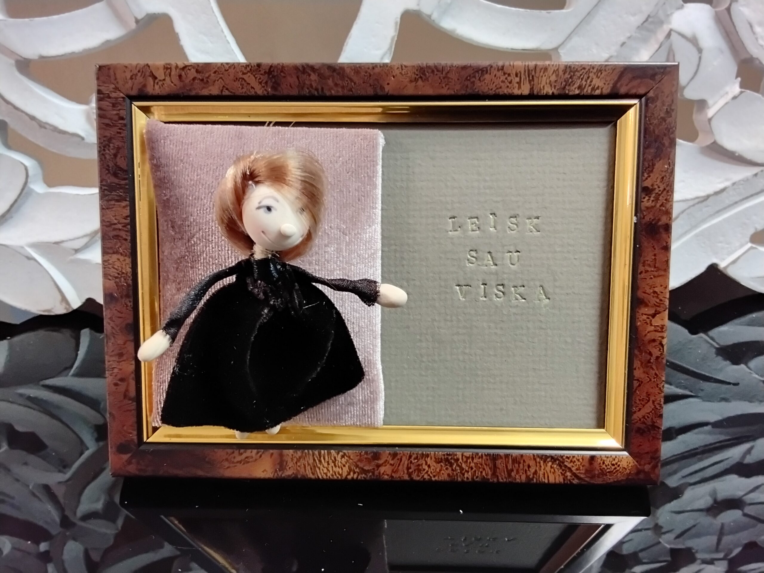 Autorinis darbas segamas papuošalas bei interjero detalė su palinkėjimu ,, Puošk save”