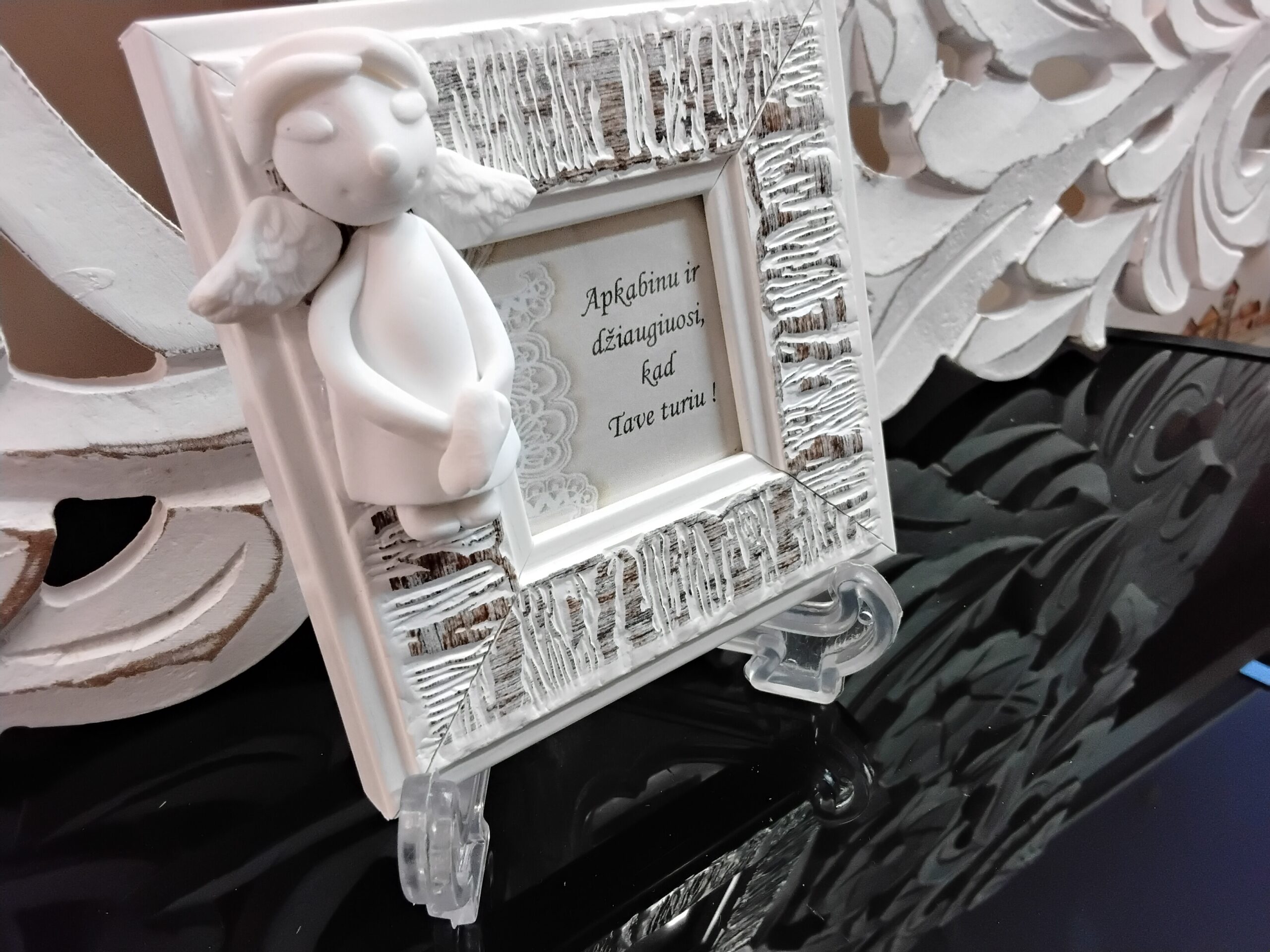 Autorinis keramikos darbas su užrašu